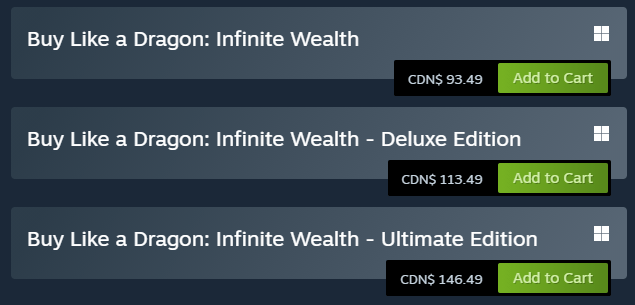 In Infinite Wealth’s case, the base game is $93.49 on Steam in Canada, which is already way more than I’m used to seeing. And then, to get the ability to play New Game+, I either need to buy it separately for $26.99, or fork over $113.49 in total to get the Deluxe Edition, which includes the base game, as well as New Game+, previously locked achievements, and an entire dungeon… which should be in the base game to begin with as well. There is also the Ultimate Edition, which includes everything I just mentioned plus extra cosmetics for the characters and the entire soundtrack. That is, quite frankly, way too much money to be spending on one video game. I could buy up to 7 different games with $113 during a sale, but in order to enjoy this particular game to the fullest extent, I have to already pay over $90, plus even more to have access to a feature which should never be locked behind extra money. It’s beyond lunacy.