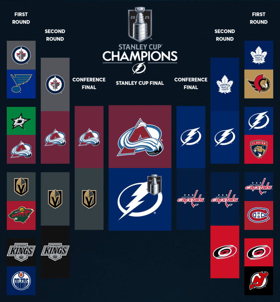 As for Colorado, I think they have the most complete (and healthy) roster in the West right now, and they just got their captain Gabriel Landeskog back after he missed nearly the last 3 seasons with a serious injury. Putting aside rivalries, this Dallas fan thinks it would be really cool if Landeskog played well and if the Avs won the Cup with him in the lineup this year, I think it would be an awesome story. That being said, I think Colorado will lose in this rematch of the 2022 finals, and I think it will be in 6 games. As for my Conn Smythe (playoff MVP) pick, I’ll go the safe route and pick Nikita Kucherov. It’s time for him to win one of those; it’s basically the only piece of hardware he’s lacking.